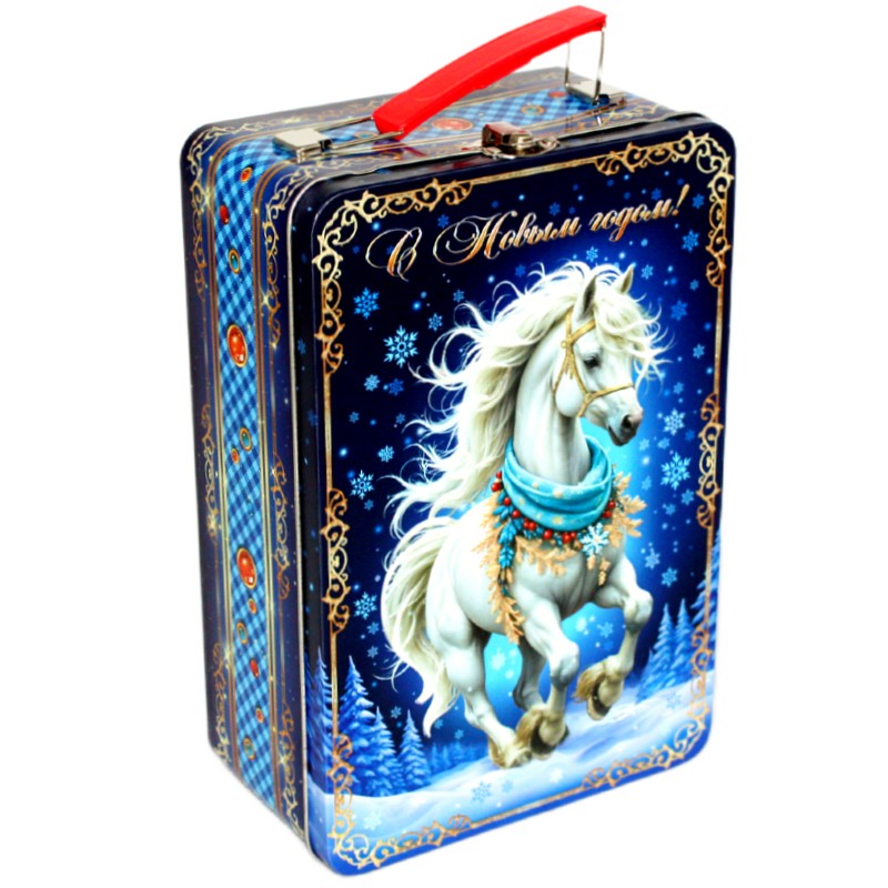 Детский новогодний подарок в жестяной упаковке весом 1200 грамм