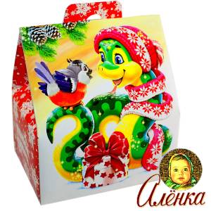 Яркая упаковка наполнена вкусными конфетами от знаменитой фабрики Красный Октябрь и лучшими сладостями от Алёнки.